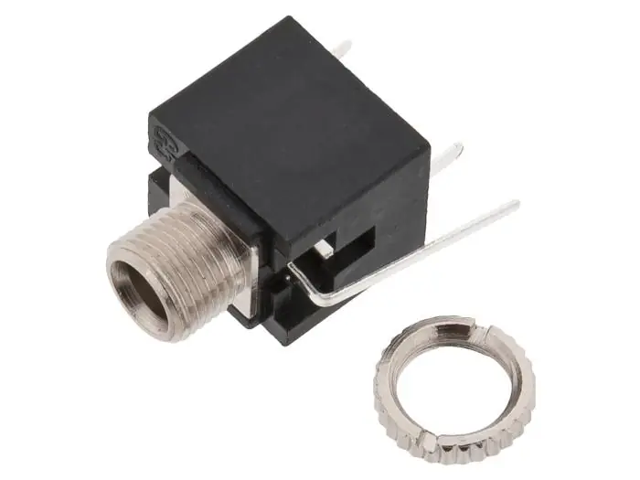 Kretskortsmonterat 3.5mm monouttag med brytare. Passar på kopplingsdäck och experimentkort med 2.54mm rastermått.