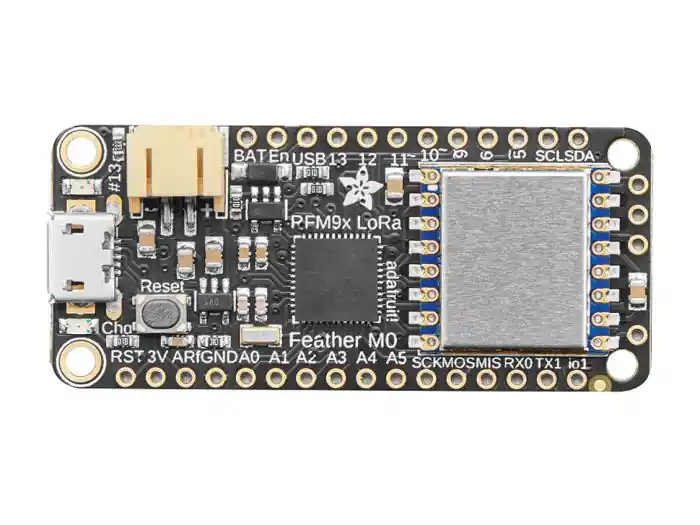 Adafruit Feather är ett utvecklingskort med en Atmel SAMD21 ARM Cortex-M0 mikrokontroller, samma som Arduino Zero och Arduino M0. På kortet finns även en LoRa (Long Range) RF-modul för trådlös kommunikation via det öppna 433MHz ISM-bandet. Perfekt för att skapa trådlösa sensornät med längre räckvidd än bluetooth och lägre strömförbrukning än WIFI. Räckvidden med en enkel trådantenn är ca. 2km i fri sikt. För att göra kortet enklare att använda med batteri har det inbyggd batteriladdare för LiPo-batterier.