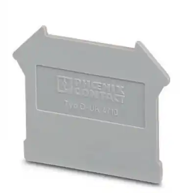 Typbeteckning på ändbrickan består av D = ändbricka samt typbetäckning på de plintar som den tillhör. Ändbricka D-UK 4/10 passar till plintar UK 3 N, UK 5 N, UK 6 N och UK 10 N. Ändplattan har längd 42,5 mm, bredd 1,8 mm och höjd 35,9 mm. Färg: grå.