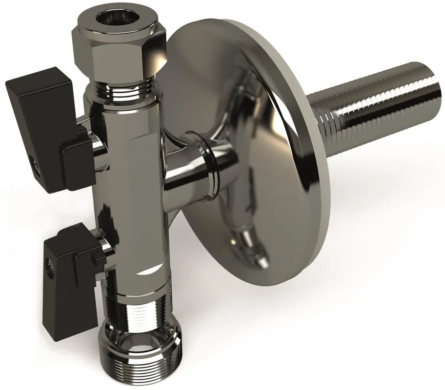 För samtliga LK Väggdosor. Levereras med förkromad väggbricka Ø 80 mm. Utv G15 för anslutning till väggdosans vinkelnippel, 75 mm lång. Med två anslutningar i vinkel båda med avstängning. En utv G10 till blandare och en med utv G15 för tex tvättmaskin.
