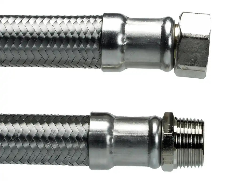 Neoperl 8192762 är en tappvattengodkänd anslutningsslang med innerslang av silikon, hylsor i rostfritt stål och kopplingar i mässing. Slangen har en invändig och en utvändig gänga. För anslutning av varmvattenberedare, pumpar med mera.