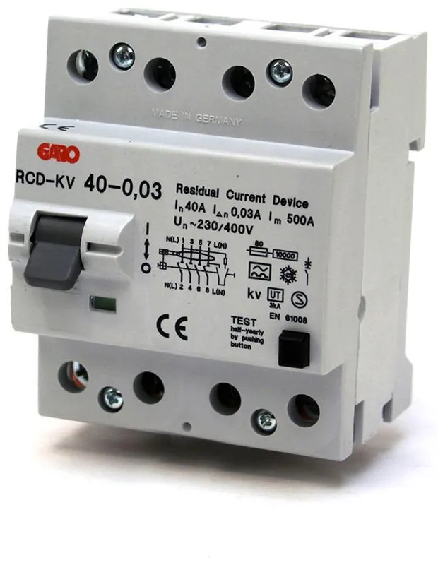 RCD-STD är en korttidsfördröjd jordfelsbrytare 10kA som är anpassade för installation i bostäder eller industri för att skydda person och materiel för felströmmar vid kortslutningsströmmar upp till 10kA. På samtliga GARO jordfelsbrytare kan spänningsmatning utföras på över- eller undersida och på samtliga 2-poliga jordfelsbrytare finns möjlighet att ansluta neutralledare på höger eller vänster sida. På de 4-poliga jordfelsbrytarna ska nollan placeras till vänster. Samtliga jordfelsbrytare är testade och godkända av oberoende europeiskt testinstitut.