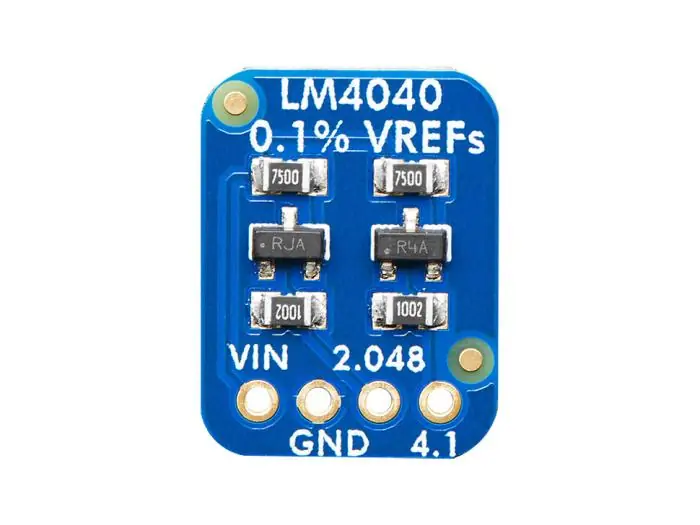 Kort med två olika spänningsreferenser för 2.048 och 4.096V. Spänningsreferenserna är av mycket hög precision och kan användas som en referens för AD-omvandlare eller för att kalibrera instrument. Att använda kortet är så enkelt som att ansluta matningsspänning (5-12V) och jord. Referensspänningarna plockas sen ut på respektive utgång. Observera att utgångarna inte är gjorda för att driva någon last, utan kan bara användas som just spänningsreferenser.