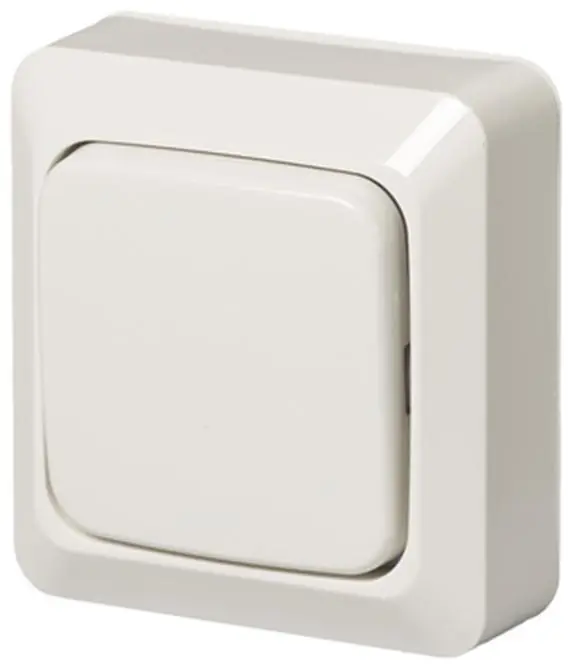 Kompletta strömställare för utanpåliggande montage, IP 20. Alpinvit. Av slagtålig halogenfri polykarbonat (förutom E1818354 som är av material halogenfri termoplast). Snabbanslutning av ledarna. Hel bottenplatta på samtliga strömställare. 16A, 250V.