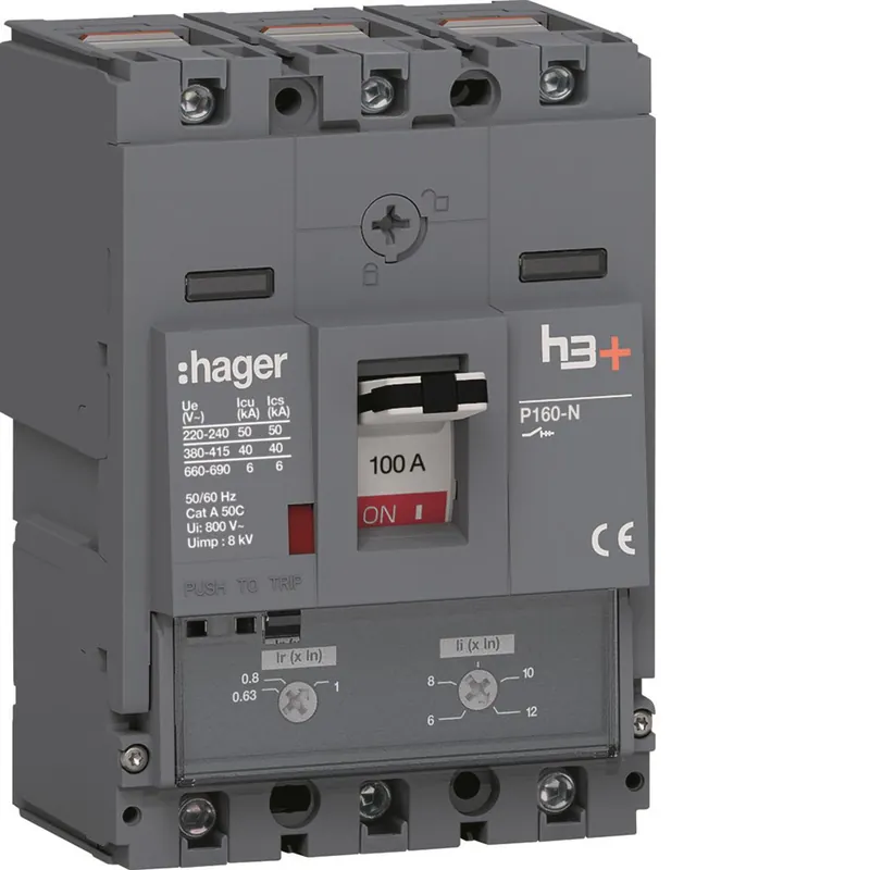 Effektbrytarna h3 + (MCCB) från Hager har brytförmåga upp 50 kA vilket ökar säkerheten utan att kompromissa med driftsäkerheten. Mellan 25 till 250 A med brytförmåga 40 till 50 kA med flera möjligheter till övervakning och styrning av din installation. Förutom termomagnetiska utlösningsskydd erbjuder h3+ även elektroniska skydd i form av LSI och Energy. Med Energy versionen erhålls fler mät och styrfunktioner såsom energimätning, effekt, ström och spänning.