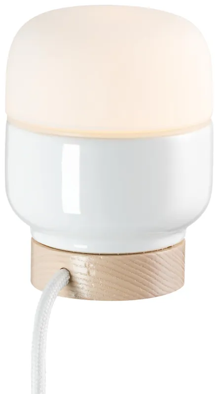 Ohm Table 100 höjd 130 mm vit matt opal IP20 G9 20W. 2 m. vit tygkabel med dimmer
