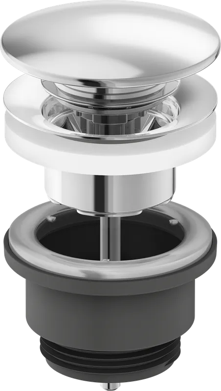 Blyfri push-down ventil i krom. För handfat i tjockare gods med bräddavlopp. Byggdjup under bänk: 39 mm.