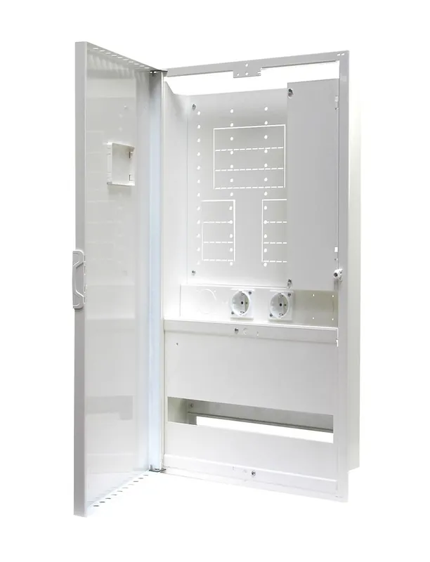 GAROs plåtcentral utan bottenlåda är en kombinerad norm- och mediacentral för infällt montage. Mediadelen är placerad ovanför (U)alternativt nedanför (N) normdelen. Mediadelen är försedd med 21st RJ45 keystonehål (14x20mm per/hål) , 2st vridbara vägguttag som skyddas av 1P 10A automatsäkring ,slitsade hyllor för mediautrustningen samt försedd med wifi-fönster för att säkerställa att wifisignalerna kommer ut .Centralen kan monteras både infälld med bottenlåda i väggen likväl som utanpåliggande med ram. Bottenlådan finns i 2 djup. Om bottenlådan 107-djup används kan media och normkablar komma från samma håll. Det sparar många meter kabel i fastighetsinstallation. Om centralen skall placeras i vägg med 70-regel så avänds bottenlåda 82 djup, kabeldragning för media resp norm måste då dras från olika håll. Särskilt lämplig för lägenheter och mindre villor. Centralen är tillverkad i plåt vilket ger säkerhet vid t ex brand.