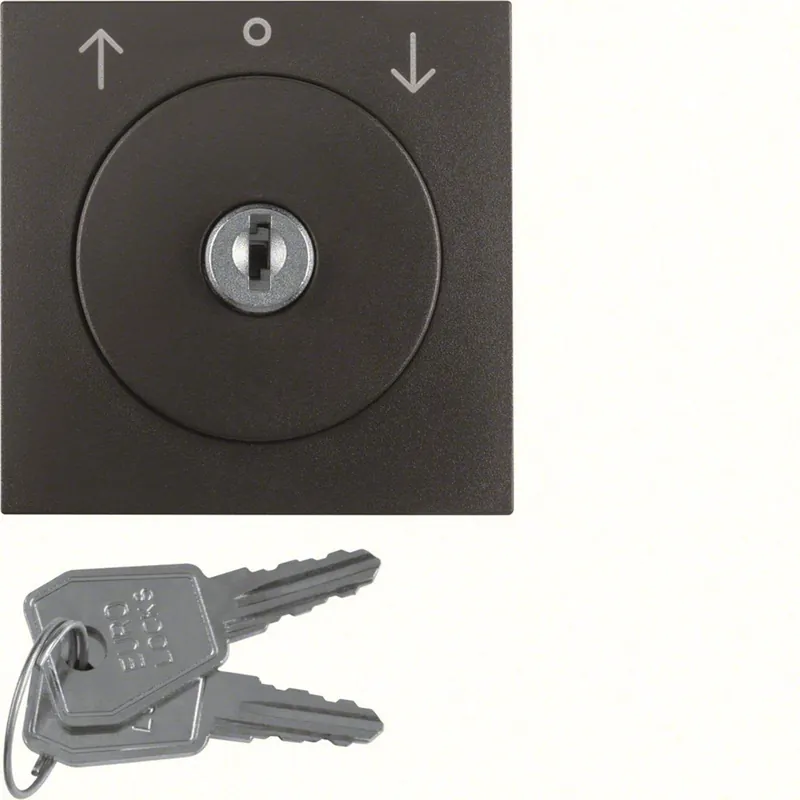 Centrumbricka med lås för brytare till jalusi/markis, nyckeln kan tas ut i läge 0, Serie berker S.1/B.3/B.7, Antracit.