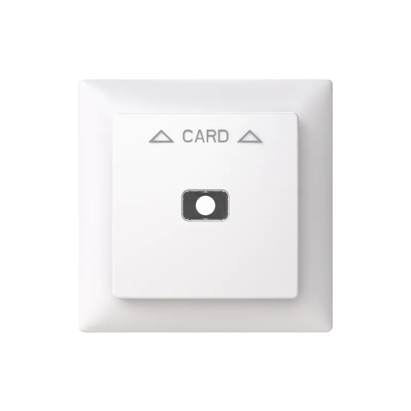 Kortströmställare med centrumplatta och skruvlösa terminaler. Strömbrytaren kan till exempel användas som huvudströmbrytare för hotellrumsbelysning. Strömbrytaren fungerar med nyckelkortet till hotellrummet. I leveransen ingår en lampa som fungerar som sökljus. Med snabbanslutning. Max 16A. Hållbart biocirkulärt material används. Ytan är blank och lätt att hålla ren. Rengöring med ett milt, vanligt hushållsrengöringsmedel.