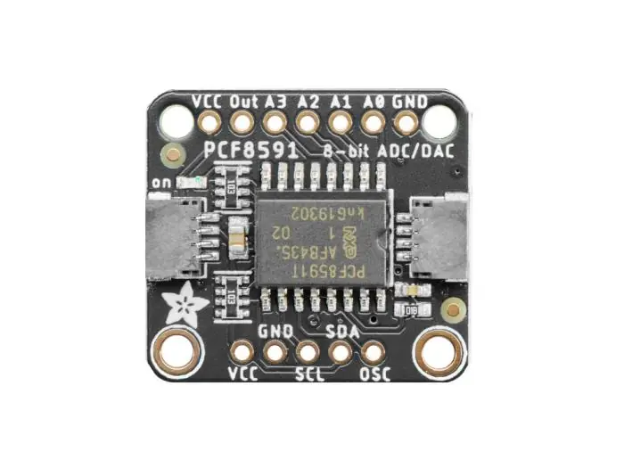 Fyra 8-bitars ADC och en DAC i ett lättanvänt paket med I2C-interface (Qwiic). Bygger på A/D-D/A-omvandlaren PCF8591 från Nexperia, som är en enkel omvandlare av typen SAR (Succesive Approximation Register). En samplingsfrekvens på 11.1kHz ger god upplösning i tiden för sensorer. 8 bitar räcker för många analoga sensorer, spänningsmätning, eller för att läsa av potentiometrar och andra användargränssnitt.