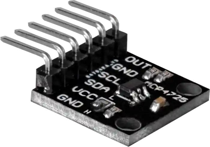 DAC01 är en 12-bit DAC-modul (digital-till-analog-omvandlare) för användning med Raspberry Pi, Arduino, etc. Modulen används när en digital styrsignal behöver omvandlas till en analog utsignal, till exempel referensspänningar eller test- och mätapplikationer. Modulen kommunicerar via I2C. Bygger på kretsen MCP4725. Den integrerade EEPROM-funktionen gör det möjligt att lagra ett utgångsvärde som automatiskt återställs vid uppstart, det utan att mikrokontrollern först behöver initiera modulen.