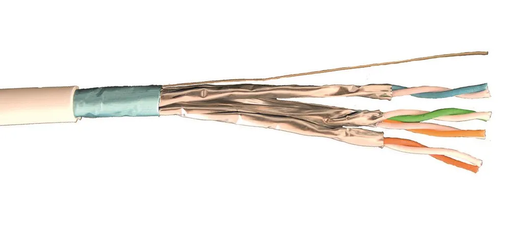 Kabel F/FTP C6A. Skärmad 4-pars kabel, varje par är individuellt skärmad med en folieskärm och ytterligare en folieskärm runt alla fyra paren. Bandbredd upp till 50 0MHz, klarar 10 G Base-T Ethernet och motsvarar kraven för SS-EN 50173 serien. Kabeln är halogenfri och avsedd för strukturerad kabling inomhus. Ingår i TCS garantisystem. Färg vit med metermarkering. Böjradie under förläggning 8 ggr kabelns diameter, permanent installerad 4 ggr kabelns diameter.