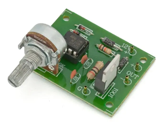 En krets som kan användas för hastighetsreglering av DC-motorer eller som dimmer för LED-lampor. Bygger på pulsbreddsmodulering (PWM), uppbyggd kring 555 IC. Max 1.5A. 6-15V.