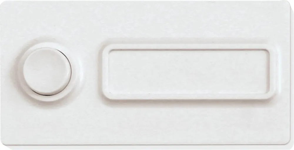Trådlös dörrsignalknapp, 80 x 40 x 15 mm, batterifri. Genererar själv energi för trådlösa telegram när knappen trycks in. Fältet för namn är 43 x 12 mm, passar för exempelvis Dymo tape 9 mm eller 12 mm. Dörrsignalknappen sänder samma typ av telegram som en 1-kanals trådlös tryckknapp.