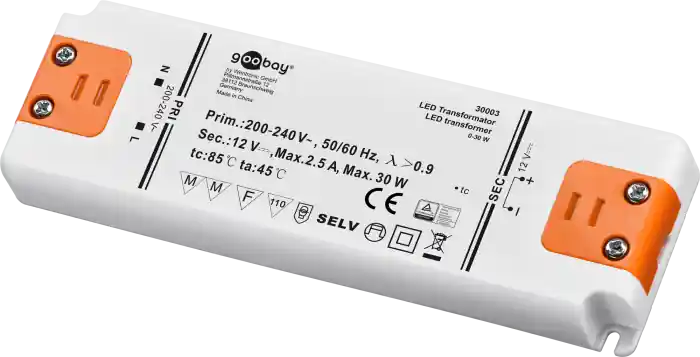30W elektrisk transformator, strömförsörjning driver, drivare, driftdon eller drivdon är vanliga benämningar på installationstrans-transformatorer för lågvolts LED-belysning. Lämplig till LED-lister, LED-strip, LED-moduler och LED-ljuskällor.