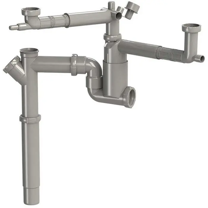 Faluplast Falu 3Flex är ett vattenlås med teleskåprör, för diskbänk med dubbellåda.
