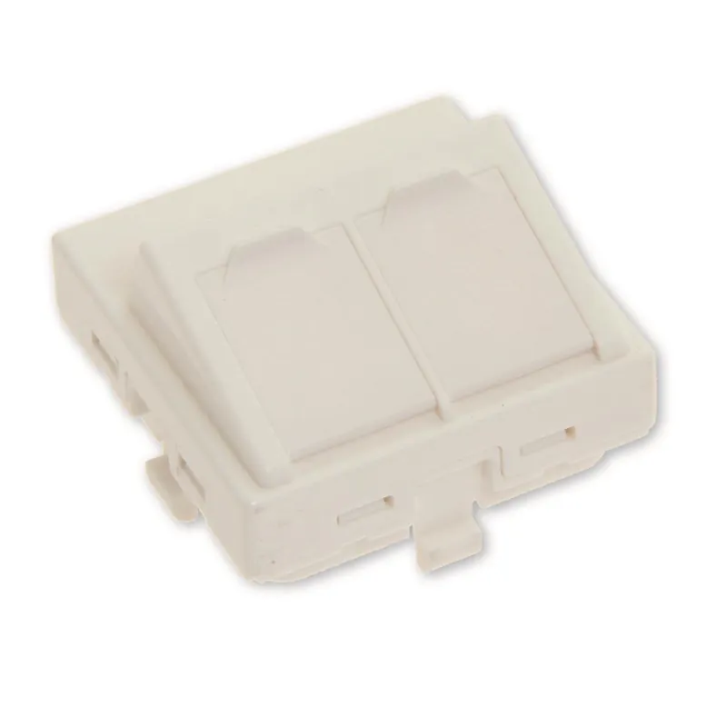 Eurolan centrumplatta Mosaik 45×45 för 2xKeystone vinklad med dammlucka. Snäpp-in fäste som passar i kanaler/hålbilder med måtten 45×45. Kompletteras med valfritt Eurolan keystone jack.