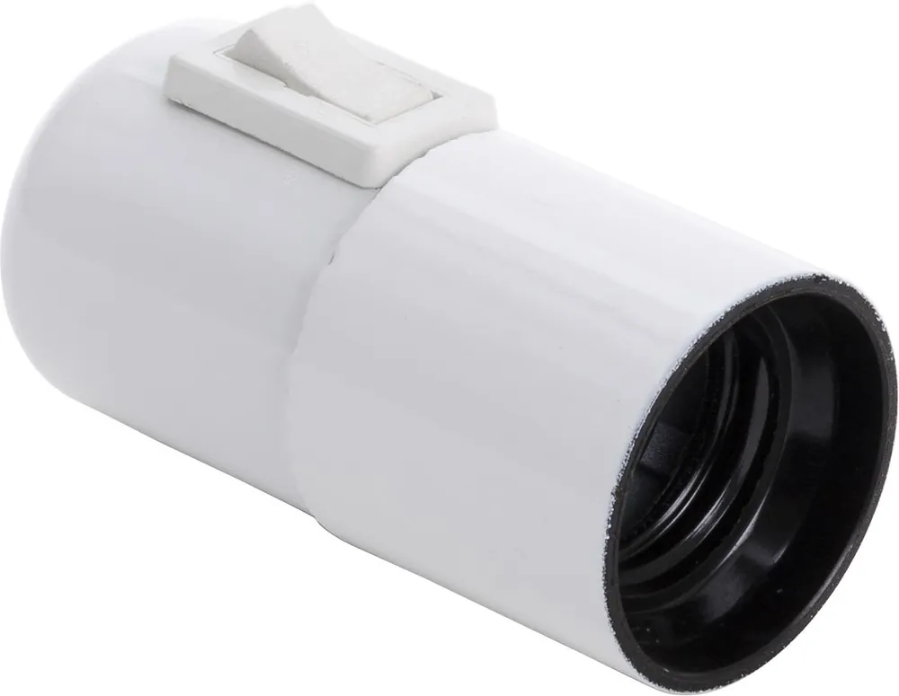 Lamphållare för exempelvis bords- eller taklampor. Med vippströmbrytare.