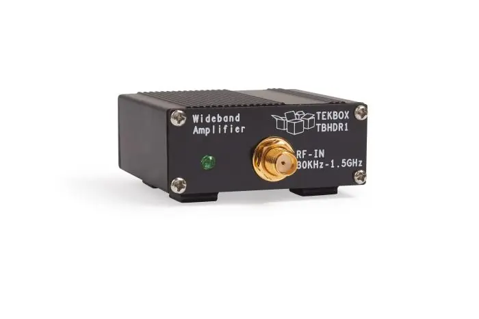 Förstärkare för RF-signaler med högt dynamiskt omfång. Förstärkaren är optimerad för frekvensområdet 30kHz till 1.5GHz. Lämplig som förförstärkare till spektrumanalysatorer och EMC-testutrustning samt aktiva antenner.