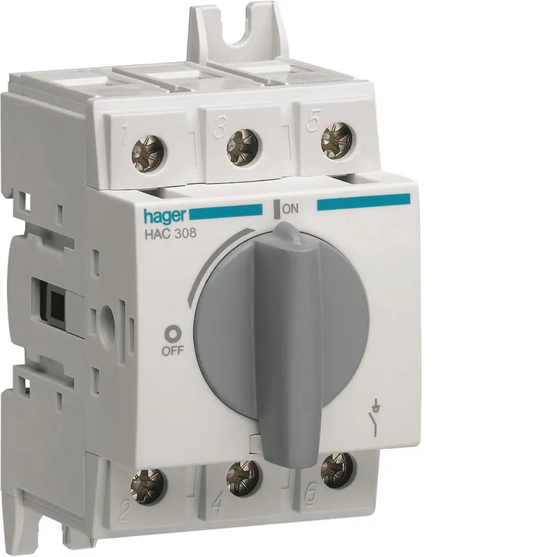 Huvudbrytare i modulutförande kan monteras i alla normkapslingar och skåp. Lastbrytare med oberoende handmanöver och synligt brytställe. Brytarna monteras på DIN-skena.