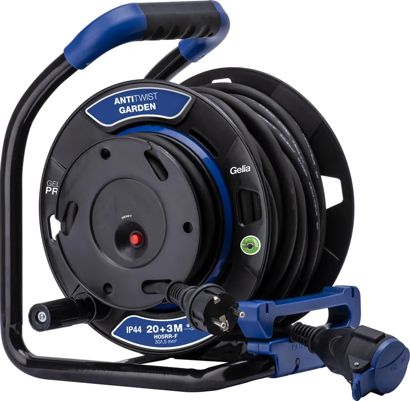 Trädgårdsvinda med antitwist och överhettningsskydd. Lämplig för häcksax, trimmer m.m. Kan enkelt vägghängas. 20 m kabel med skarvuttag och 3 m kabel med jordad stickpropp. Kabeln vevar du snabbt upp på vindan igen med det infällbara handtaget och du slipper kabeltrassel tack vare inbyggd styranordning som även kan användas för att låsa kabeln vid önskad utdragen längd. Kabelvindans fasta nav gör att ytterligare kabel kan dras ut eller vevas in även när maskiner är kopplade till vindan utan att kablarna trasslar ihop sig. Bekvämt, gummerat bärhandtag. Kabelvindans max belastning som anges på artikeln avser helt inrullad respektive helt utrullad kabel.