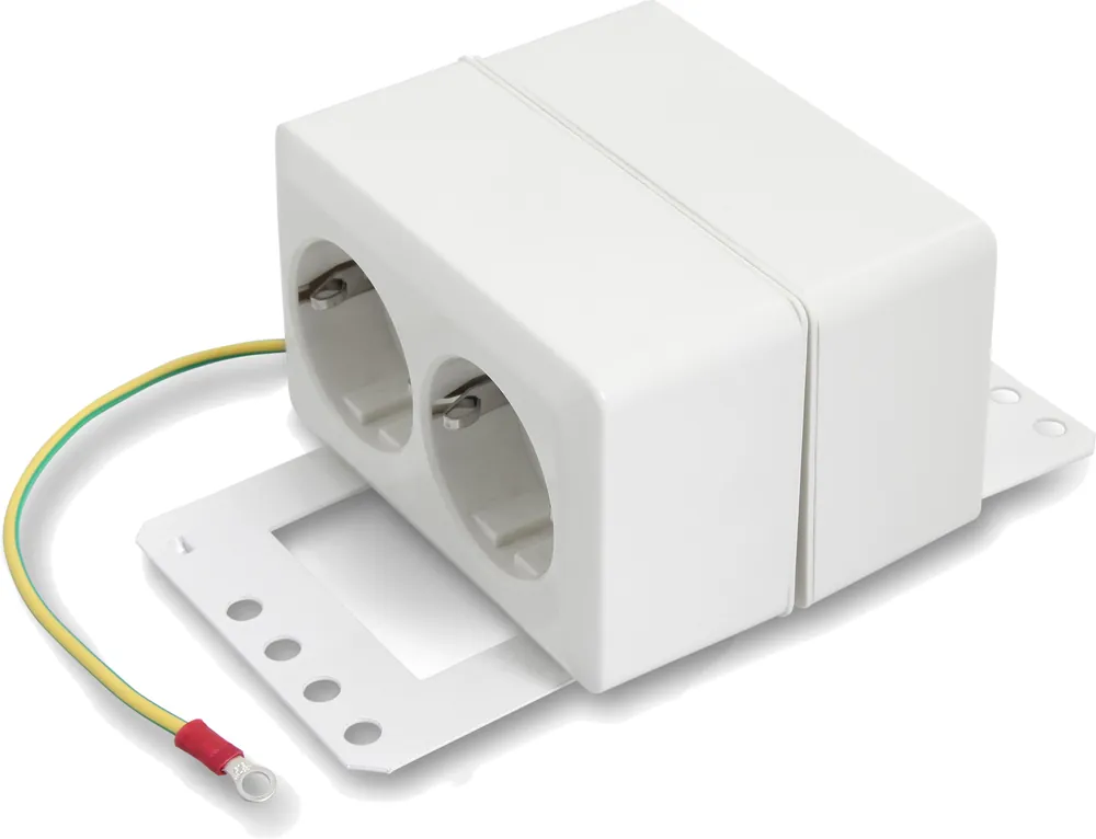 Eurolan 50S-21-11WT är ett eluttag med 4 st Schuko-uttag på 230 V 10/16 A. Uttagen är placerade på en monteringsplåt avsedd för montage i IT-centraler av märket Eurolan Home och medger anslutning av upp till 4 st apparatsladdar eller transformatorer. Uttagen är byglade och anpassade för direkt och fast anslutning av inkommande ledning från elcentral. Inkluderar en 20 cm ringkabelskoförsedd jordtråd för anslutning i plåtgodset.