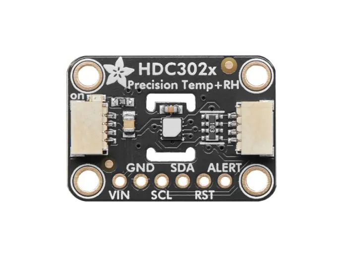 HDC3021 är en sensor för att mäta temperatur och luftfuktighet med extrem precision. Noggrannheten för temperatur är ±0.1°C och för luftfuktighet 0.5%, vilket är enastående bra. För att göra livet enklare är den lilla sensorn monterad på ett behändigt adapterkort tillsammans med de få kringkomponenter som krävs för att den ska fungera. Kommunikation mot mikrokontroller sker via I2C. Upp till 4 sensorer kan anslutas till samma buss genom att konfigurera varje sensor med en unik adress. Adressen ställs med lödbryggor på kortets baksida. Bibliotek och exempekod för Arduino och Python finns att tillgå så det går snabbt att komma igång.