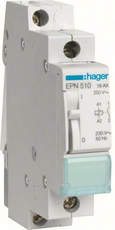 Impulsrelä, även kallat bistabilt relä. Styrs via puls från t.ex tryckknapp. För mindre laster såsom belysning mm. Försedd med lägesindikering och handomkopplare.