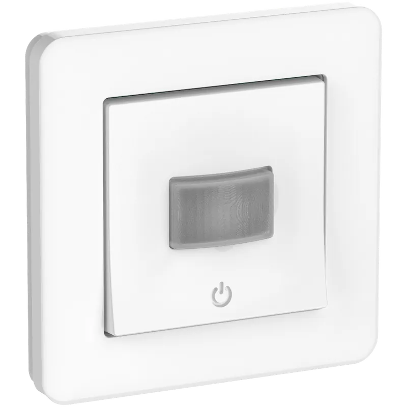 Exxact Rörelsedetektor 160º 10A med inbyggd tryckknapp 10A. LED 200W, 2200W R laster, 2000W halogen 230V, elektroniska transformator 1050VA, 500VA konventionel transformator, 1000VA motor last. Kräver nolla. För infällt montage i apparatdosa c/c 60 mm, för utanpåliggande montage används dosa 35 mm. Levereras med Exxact Primo ram. Vit