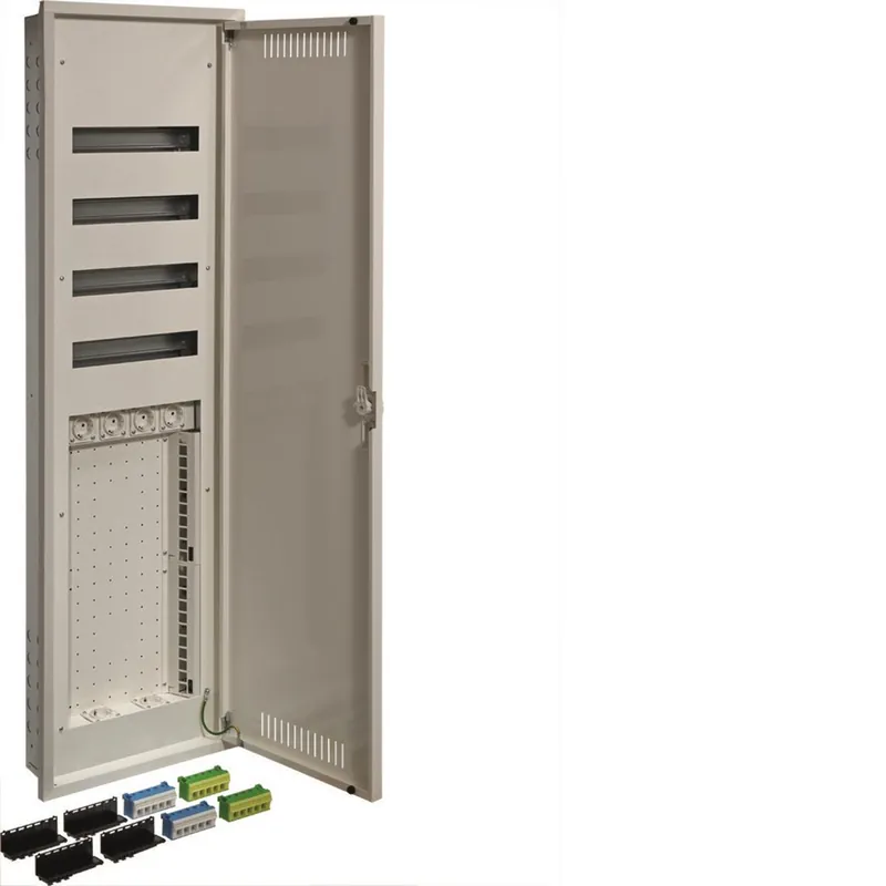 Infälld kombicentral med med 15 moduler per rad och ett generöst utrymme för mediakomponenter. Sex stycken SCHUKO uttag i centralen, tre upptill och tre nertill Plats för 22 Lexcom/Actassi uttag som standard. Plåt för Keystone finns som tillbehör. Monteringsplåten med möjlighet att använda fästband eller vinklat hyllplan