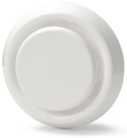Frånluftsventil av vit plast, med fjäderbladsfastsättning.