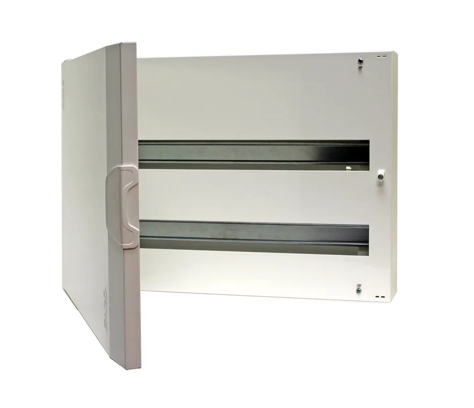 GAROs plåtcentraler för utanpåliggande montage.Centralen levereras alltid med dörr som kan vändas efter behov. Dörrarna är även förberedda för eventuellt montage av lås. Djupet bakom DIN -skenorna är 23mm. Med enkla fästen hålls hela inredet på plats men vid installation eller justeringar kan allt fällas ut i vinkel vilket gör att man får ett bekvämt arbetsutrymme samt en stor hjälp vid det slutliga montaget av de utgående kablarna. Detta bidrar till ett säkerställande av den kompletta centraler beträffande risken för överslag och uppkomsten av ljusbågar mellan ofullständiga anslutna ledare.Centralen finns från 1-radig upp till 5-raders med 14,20 resp 25 modulplatser/rad.