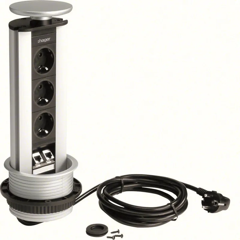 Färdigmonterade bordsmoduler inkl. 3m anslutningskabel och datauttag. För anslutning av datauttagen används färdigkontakterade patchkablar. Med bordsmodul Pop-up har du möjligheten att fälla in kraftuttag i t ex köksbänken, köksskåpet, skrivbordet eller i konferensbordet. När du behöver en elanslutning drar du fram modulen och ansluter din apparat. Datauttagen som sitter i modulerna är av typen Patch/patch, vilket innebär att man inte behöver kontaktera datauttagen utan ansluter uttagen direkt med färdigkontakterade datakablar (patchkablar).