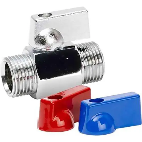 Gelia 3007003002 är en minikulventil med plana ytor som underlättar montage av exempelvis anslutningsslangar. Utvändig gänga, med vred.