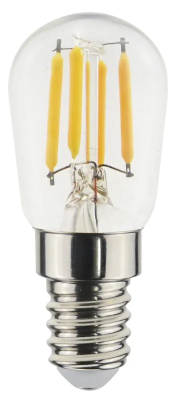 LED-lampa i filamentutförande som lämpar sig utmärkt som ersättare till traditionella, klara glöd- och halogenlampor. Ljuskällan sprider mycket ljus ner mot sockeln, vilket är en viktig egenskap i armaturer där ljuskällan installeras med sockeln nedåt. Lampan sprider ett ljus med varm ton (2200 K) och är gjord för att kunna användas även utan skärm.