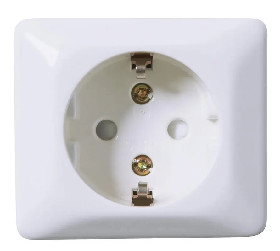 Vägguttag ”ELKO-QVICK” för utanpåliggande montage. 1-vägsuttag av säkerhetstyp skruv eller snabbanslutning. Med jord.