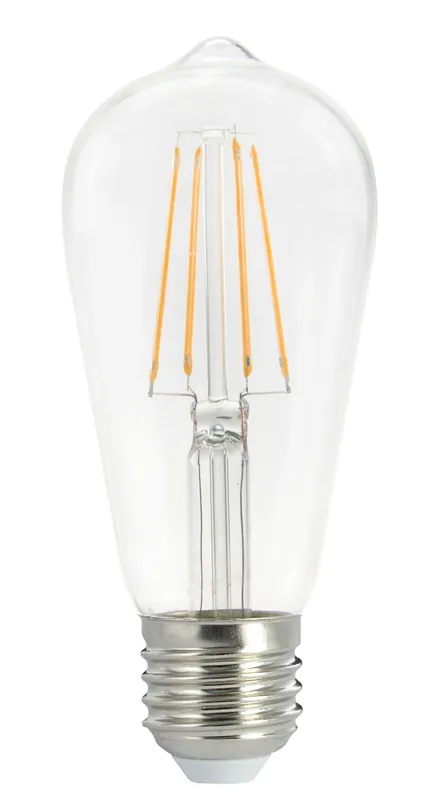 LED-lampa i filamentutförande som lämpar sig utmärkt som ersättare till traditionella, klara glöd- och halogenlampor. Ljuskällan sprider mycket ljus ner mot sockeln, vilket är en viktig egenskap i armaturer där ljuskällan installeras med sockeln nedåt. Lampan sprider ett ljus med varm ton (2200 K) och är gjord för att kunna användas även utan skärm.
