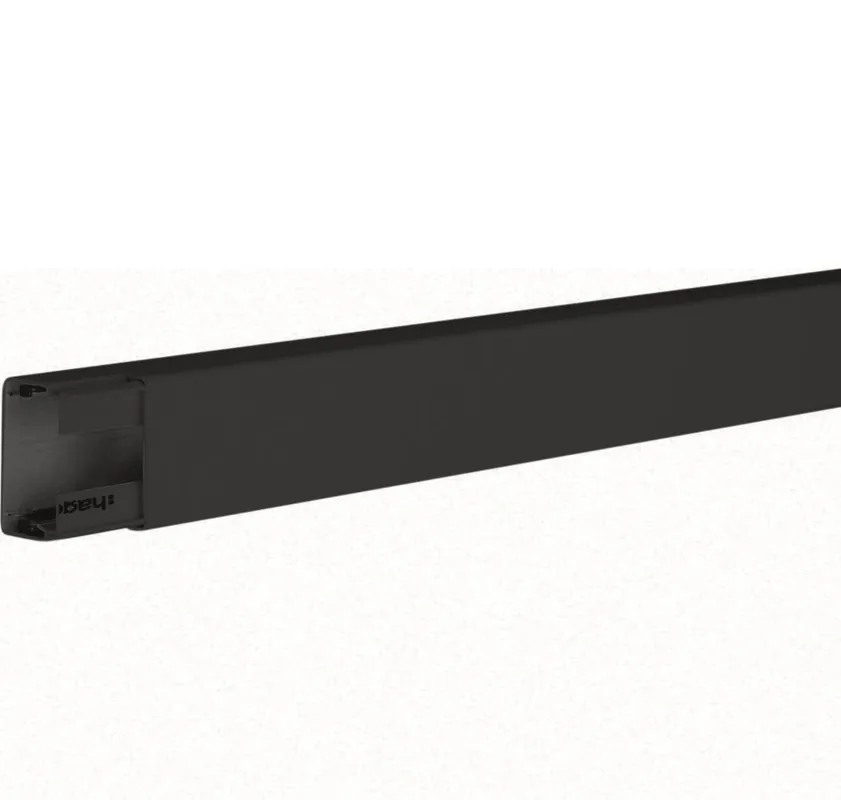 Hager LF3004509011 är en svart matarkanal för utanpåliggande ledningsförläggning. Komplett med underdel, lock och erforderligt antal klammer. Mått: 30×45 mm