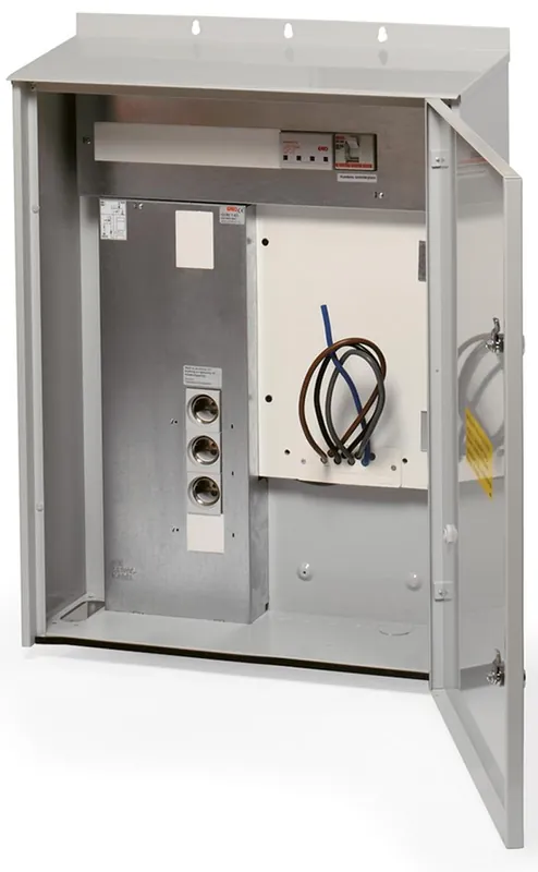 Mätarskåp i plåt för utanpåliggande montage med överspänningsskydd. På samtliga utom 2270043 är skydden monterade vid abonnentens utgående plint och avsedda för TN-S(5-ledarsystem).Försedd med inkommande avgreningsplint för max 50mm2 Al/Cu.