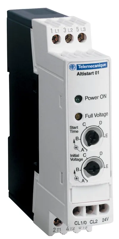 Mjukstartare för enfas eller trefas asynkronmotorer från 0,37 till 75 kW / 3 till 85 A. Altistart 01 är den bästa lösningen för mjukstart och/eller mjukstopp av de flesta applikationer. Altistart 01 är både enkel att använda (inkoppling, intrimning) och säker, tack vare kompletta motorstartlösningar (anpassade motorskyddsbrytare och kontaktorer från Schneider). TeSys® Modell U, ihopkopplad med Altistart 01 erbjuder kontrollfunktioner och kommunikation för en motorstartenhet.