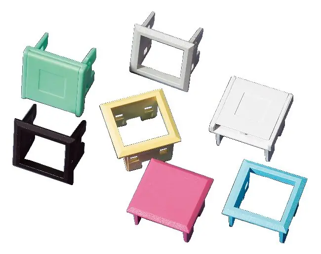 Montageram med dammlucka för LexCom RJ45 jack. Ramen monteras i centrumplattor med LexCom hålbild. Förutom att skydda mot damm finns möjlighet att märka uttaget med länknummer på ut eller insida av dammlocket. För märkning se rubriken Märkning uttag.