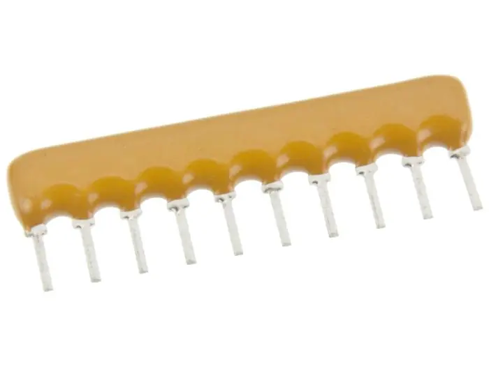 Exempel: Första motståndet ligger mellan pinne 1 och pinne 2, andra motståndet ligger mellan pinne 3 och pinne 4 osv.