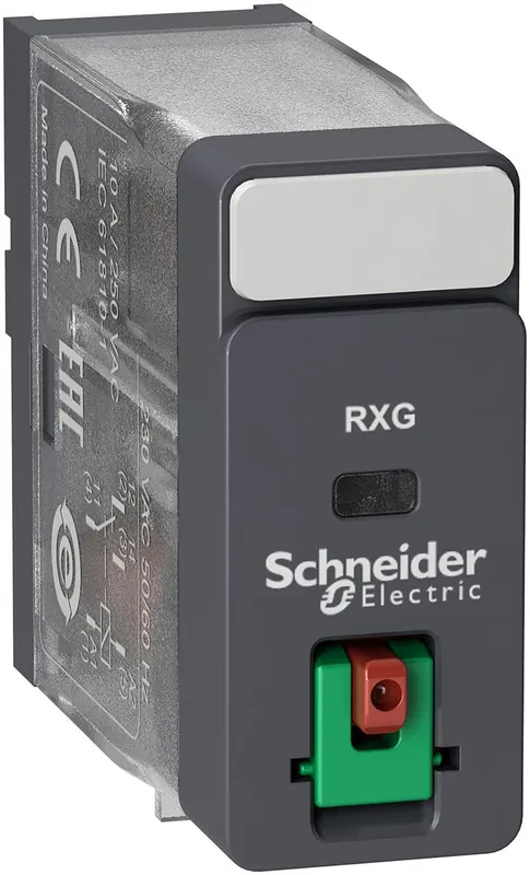 Interfacerelä med en växlande kontakt och låsbar testknapp. Plug-in, 10 A, 24 V AC.