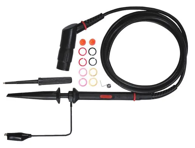 200 MHz passiv oscilloskop-prob med vinklad BNC-kontakt. Perfekt för handhållna instrument, men passar även för arbetsbänkens oscilloskop som står upphöjd på en hylla. Bra prestanda, användarvänlighet och hög bygg-kvalitet. Ställbar mellan x1 och x10. Lämplig för alla typer av oscilloskop med BNC-anslutning.