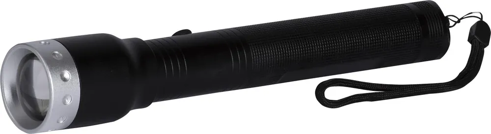 Gelia FOCUS F10 är en kraftfull och stöttålig ficklampa med LED. Dess högkvalitativ aluminiumkonstruktion gör den slagtålig och tål tuff behandling. LED-lampan är utrustad med en fokuslins som gör att ljusets intensitet enkelt justeras genom att vrida i framkant på lampan. Ficklampan har tre ljuslägen: hel, halv och blinkande samt en ljuslängd på upp till 200 meter. 2 stycken batterier C LR14 samt en handledsrem medföljer. Drifttid 5 timmar/3 timmar (reducerad styrka/full styrka). Skyddsklass IPX4.