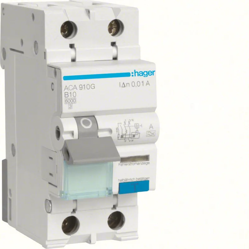 Personskyddsautomat, 1 polig + nolla med skruvanslutning. Personskyddsautomater är ett 1-poligt skydd med 2-polig brytning. Den är en kombination av jordfelsbrytare och dvärgbrytare. En allpolig och säker brytning vid: Jordfelsström i anläggningen, Överlast, Kortslutning. Den platsbesparande (2 moduler) personskyddsautomaten används med fördel till person och kortslutningsskydd av 1-fas uttagsgrupper. Fasskeneanslutningen ger möjlighet att ansluta fler personskyddsautomater.
