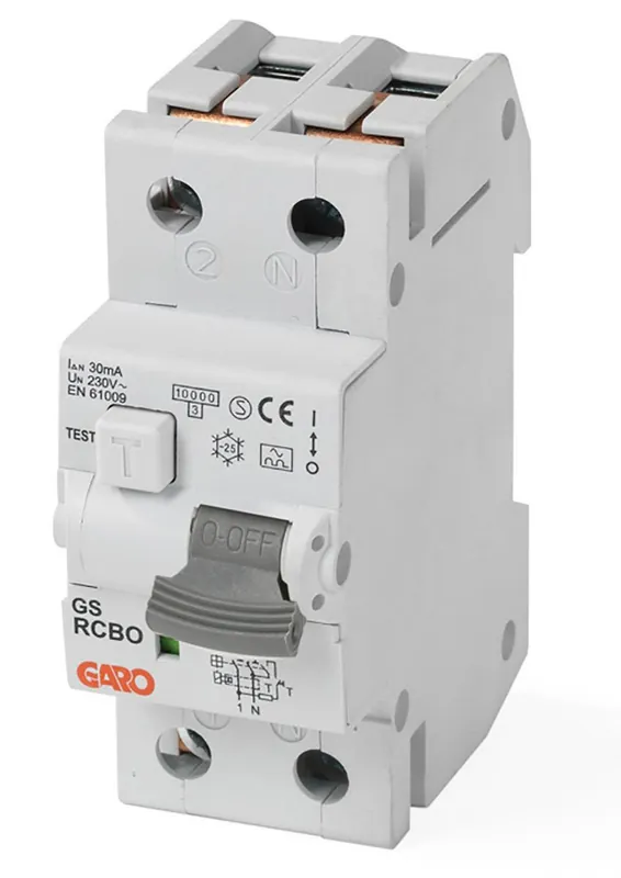 Personskyddsautomat med både säkring- och jordfelsbrytarfunktion av typ A kortslutningsbrytförmåga 10 kA. Godkänd och certifierad av SEMKO utefter standard EN61009. Matande ledare kan alternativt anslutas från över- eller undersida. Enskilda personskyddsautomater kan mycket enkelt tas bort från fasskenan och vid behov bytas ut.