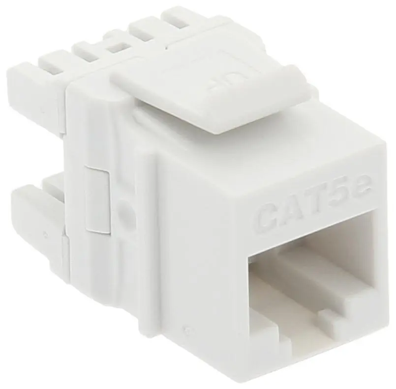 RJ45 jack med standard Keystone hålbild, kategori 5e. Den rakt bakåt placerade plinten medger enkel installation och gott om utrymme i uttagslock, anslutningsstav eller patchpanel. Jacket är verifierat upp till 100 MHz för höghastighetsapplikationer (Gigabit Ethernet). Uppfyller kraven enligt RoHS, EN 50173-1 Class D, ISO/IEC 11801 och IEC 332-1. Ansluts med 110 verktyg eller Eurolan Quicktool. Tooless ansluts utan specialverktyg.