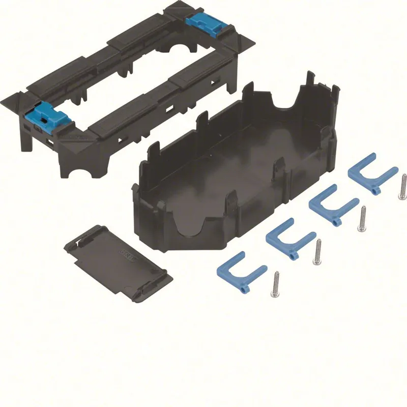 Hager GTVR300 är en svart apparatdosa med 3-fack för VQ06, VR06, VR10 (höger/ vänster).